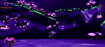 3d cave with a simple color palette. Blues, purple, neon greens and yellows. Simple yet captivating. All 3d/2d assets were made by myself (Snow)